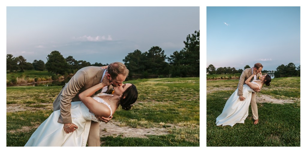 As the sky opened up with soft golden hues and pinks that wrapped around the horizon, we captured the kind of portraits photographers dream about. Elizabeth and Thomas glowed—wrapped in each other’s arms, kissed by the sun, and overflowing with love. If you’re looking for sunset wedding portraits in Virginia, this wedding is proof that a little rain can lead to absolute magic.