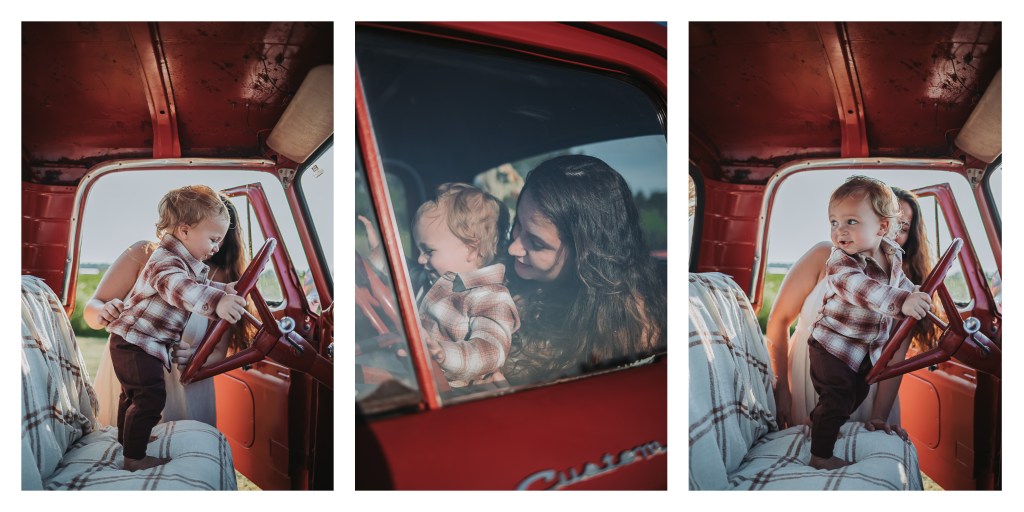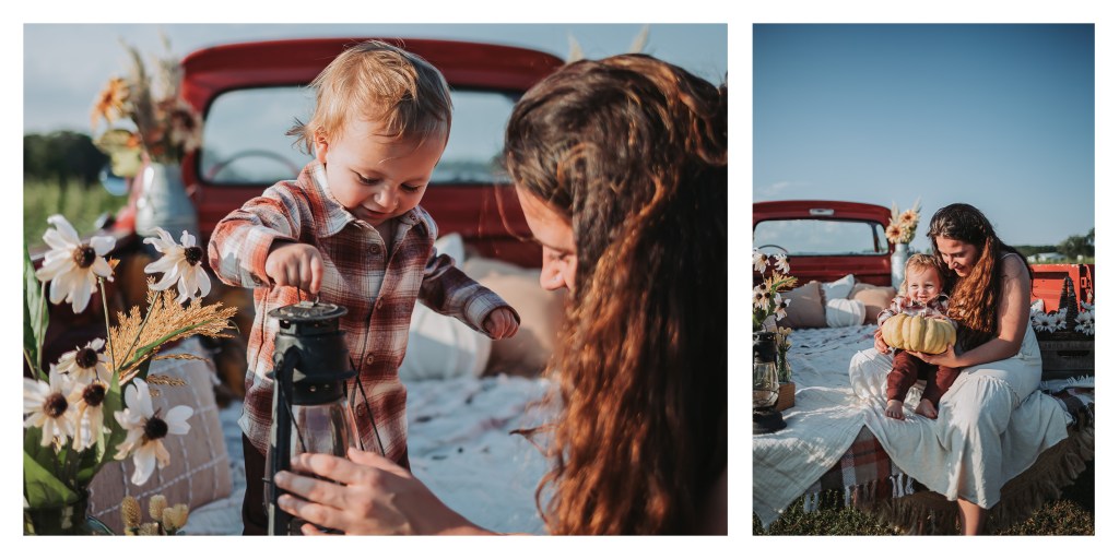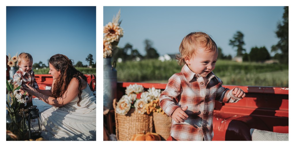 This session was such a beautiful reminder of why I love capturing the bond between mother and child. From playful giggles to tender snuggles, every moment spoke of connection, joy, and love. The vibrant fall setup with the red vintage truck provided the perfect backdrop, creating images that feel both cozy and unforgettable.
